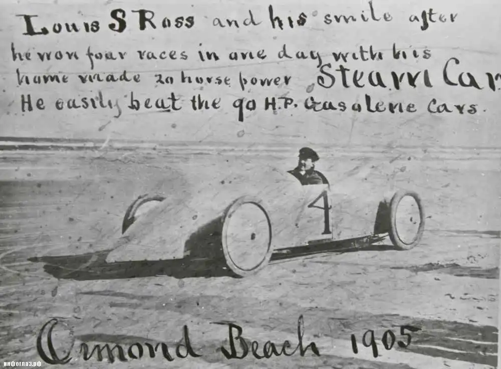 Построенный Россом паромобиль взял все призы на гонках, опередив многих именитых соперников. Машина была весьма оригинальной конструкции: двухмоторной. Вместо мертвой массы дифференциала у построенной им в содружестве с известными конструкторами паромобилей братьями Стэнли гоночной машины имелось два независимых привода на каждое из ведущих колес. Сыграла свою роль и весьма совершенная аэродинамическая форма паромобиля: машина была бесконденсаторной, а потому придумывать, как урезать лоб радиатора, чтобы он не слишком мешал, не требовалось.
