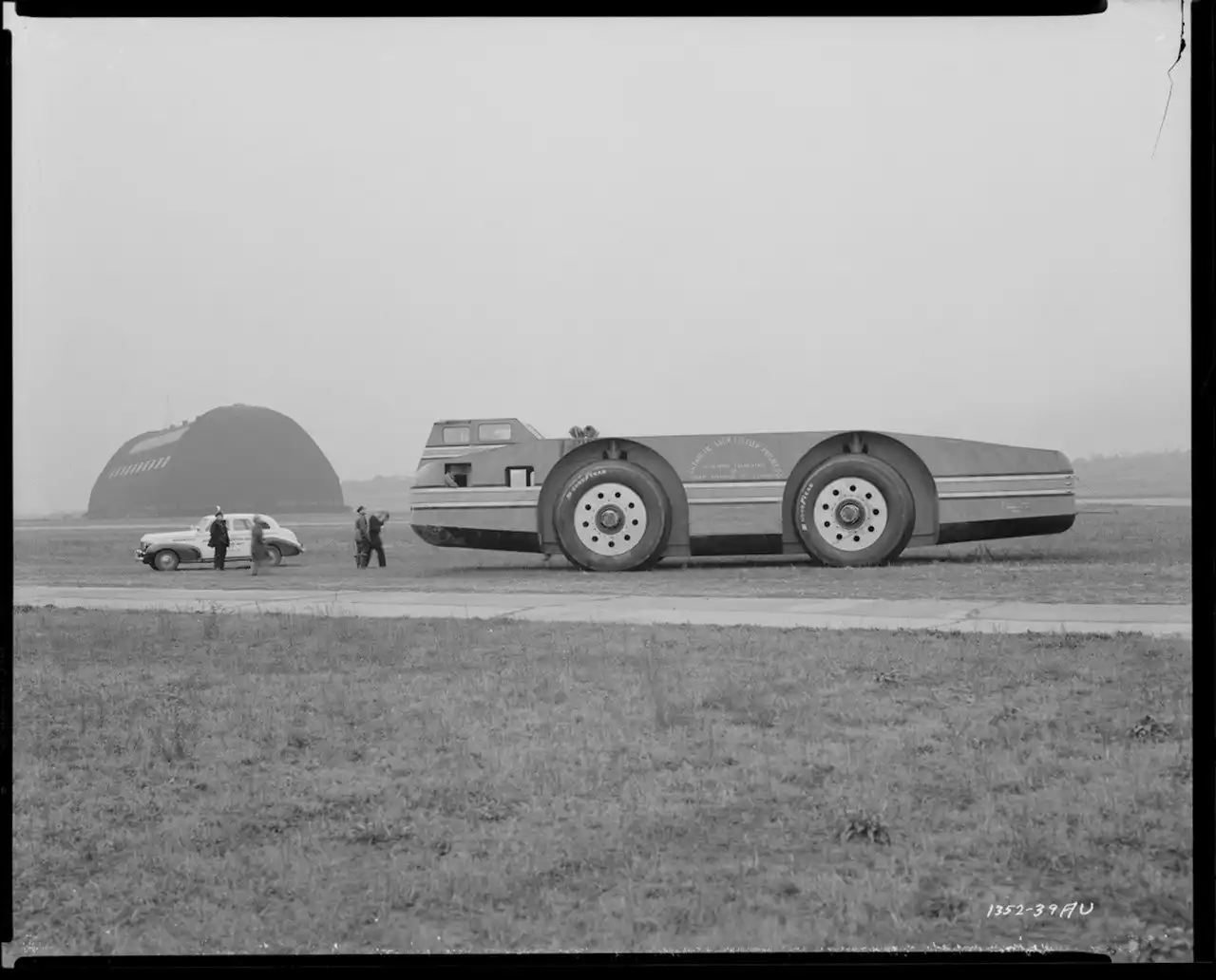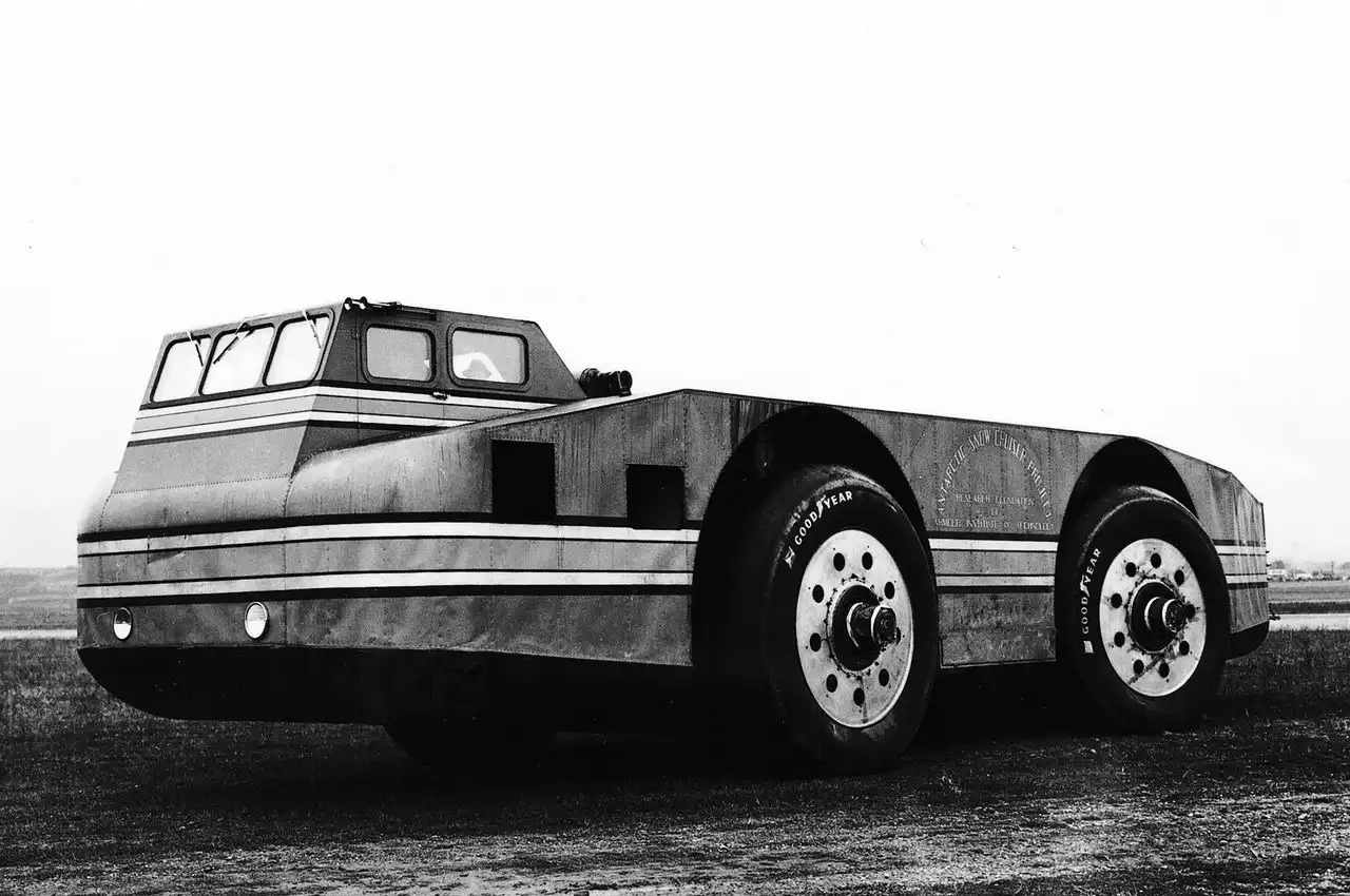 Четыре колеса были сдвинуты к центру кузова – база равнялась лишь примерно половине общей длины машины. Покрышки диаметром 120 дюймов (больше 3 м) и шириной 33 дюйма были изготовлены фирмой Goodyear из 12-слойной морозостойкой резины.
