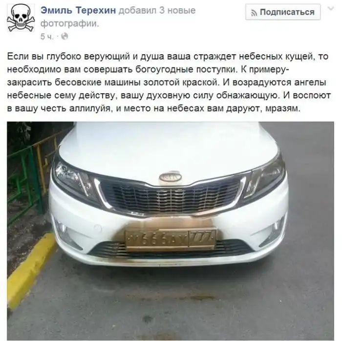 Вот такую печальную "картину" увидел утром владелец этого автомобиля, когда вышел из своего подъезда и собирался выезжать на работу. Ну, что тут еще добавить. Похоже, ритуал изгнания демонов из этой адской колесницы был успешно проведен ночью в то время, когда владелец спокойно спал в своей постели.