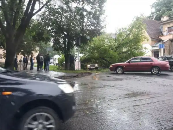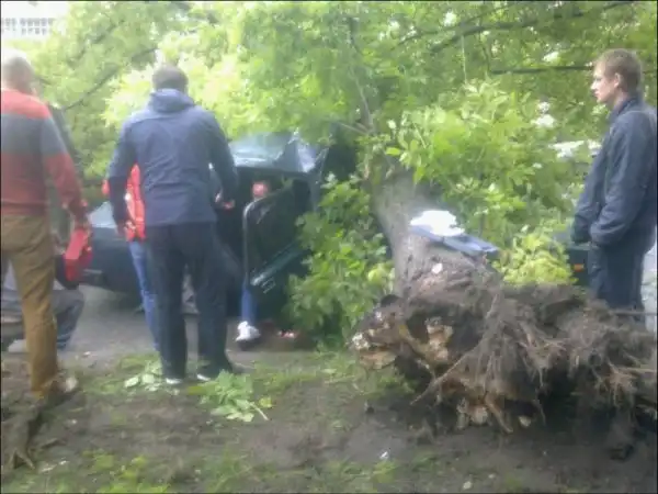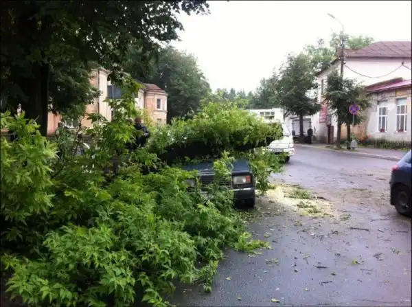 Сегодня в Пскове на автомобиль ВАЗ-2107 упало дерево. Владелец ехал оформлять продажу автомобиля. Более того, он вез в своей машине молодую пару — покупателей. Чудом все живы.