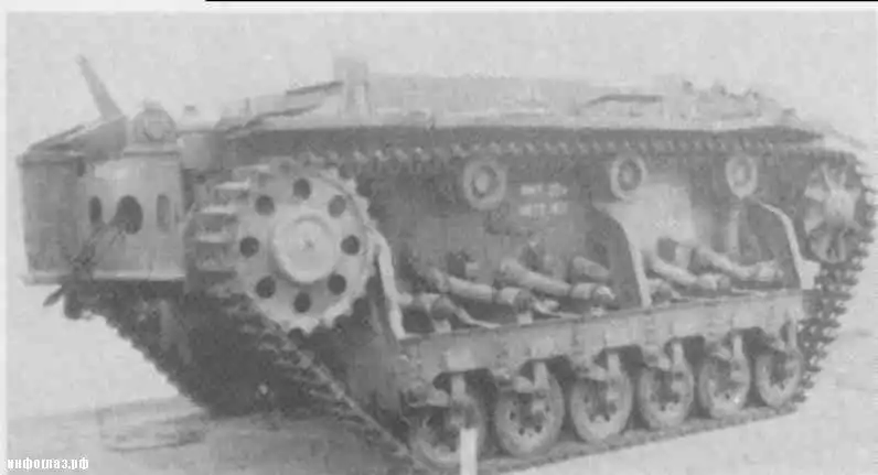Трансмиссия бронированного трала размещалась в средней части корпуса и состояла из следующих элементов: