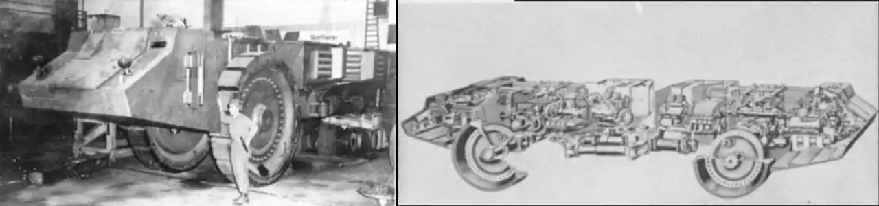 Из двух минных катковых тралов, дошедших до стадии практической реализации, не меньшей интерес представлял образец, созданный инженерами фирмы Krupp. Никакой подробной информации об этой машине до сих пор не найдено.