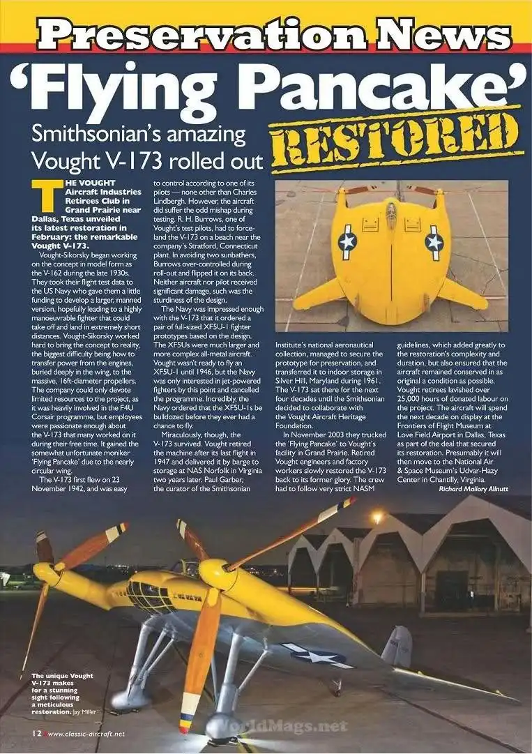 Некоторое время V-173 находился на фирме Vought, а затем его погрузили на баржу и отвезли на хранение на базу ВМС в Норфолк, что в штате Вирджиния. Цельнодеревянная конструкция спасла машину от утилизации, и сейчас его можно увидеть в запасниках авиационного музея Смитсоновского института, где он находится с 1949 года.