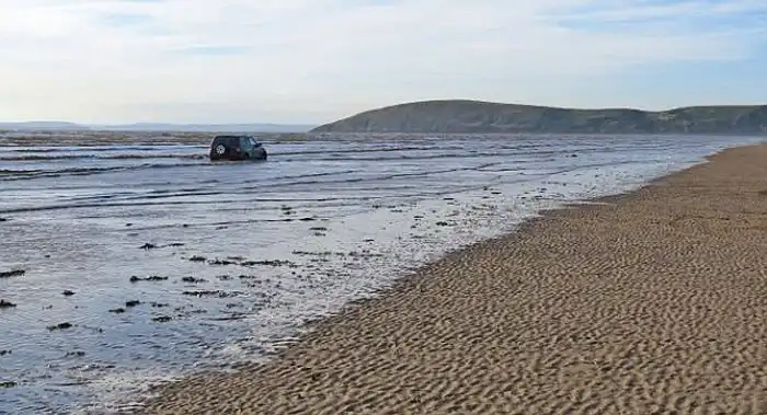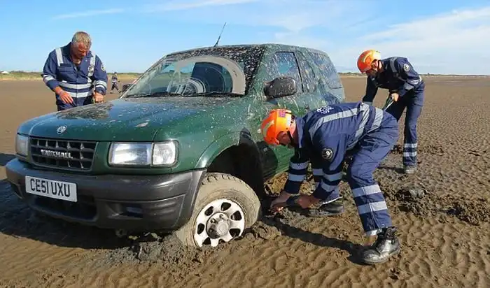 Водители-экстремалы довольно часто рискуют не только своим внедорожником, но еще и своей жизнью. Владелец этого мощного 4х4 джипа застрял в глубоком и мокром песке на пляже во время экзотической гонки, и его команда попыталась сделать все возможное, чтобы спасти авто.