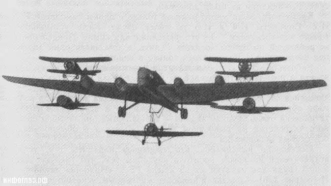 Вахмистров упорно совершенствовал свой воздушный авианосец. На смену ТБ-1 пришел мощный четырехмоторный бомбардировщик ТБ-3, а вместо истребителей И-4 — более совершенные И-5 конструкции Н. Н. Поликарпова. Бомбардировщик нес три таких истребителя — два стояли на крыльях, еще один — на фюзеляже. «Громадина получилась невиданная, — рассказывал Петр Стефановский, — но летала она здорово».