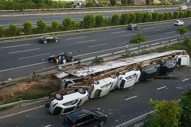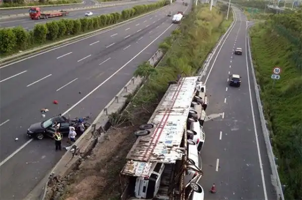 Рано утром на одном из китайских шоссе случилась очень дорогостоящая авария.
