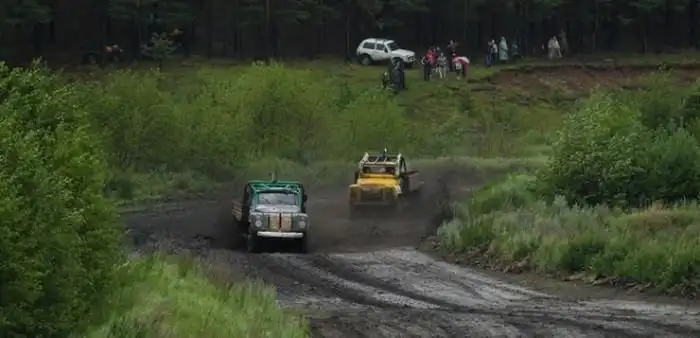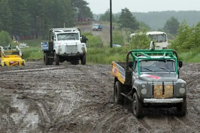 На прошлых выходных в Реже состоялась зрелищная гонка грузовиков производства Зил и ГАЗ времен СССР, которая получилась еще более экстремальной, благодаря проливному дождю.