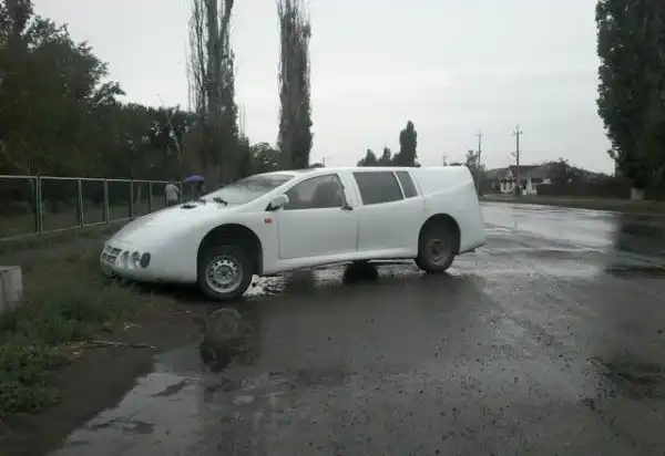 Отечественные "кулибины" пусть и не заканчивают дизайнерских школ и не практикуются на заводах крупнейших мировых автоконцернов, но тоже не пальцем деланные. Вот такое чудо от провинциального автомодельера можно наблюдать в одном из российских сел. На базе какого авто собрана тачка, ума не приложу.