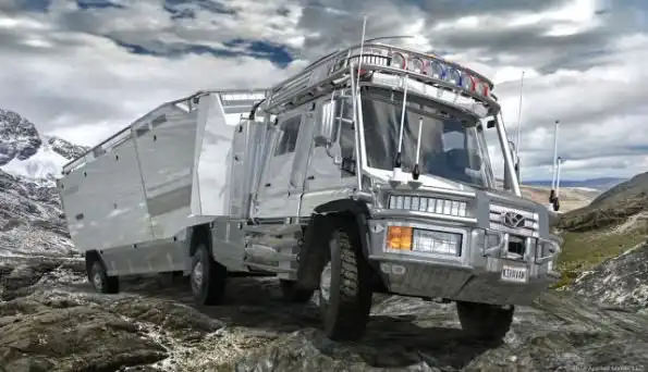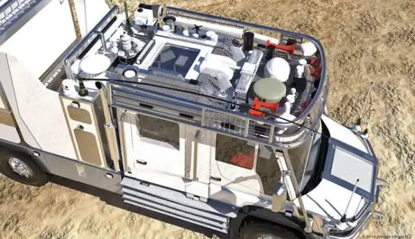 Автомобиль построен на основе Mercedes-Benz Unimog. Дизельный двигатель, 260 л.с.