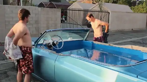 Два инженера из Лос-Анжелеса создали полноценно рабочий автомобиль с полноценно рабочей гидромассажной ванной вместо привычного салона. В своем видеоролике изобретатели лично демонстрируют, как можно лихо управлять этим автомобилем, с комфортом расположившись в теплой ванне.