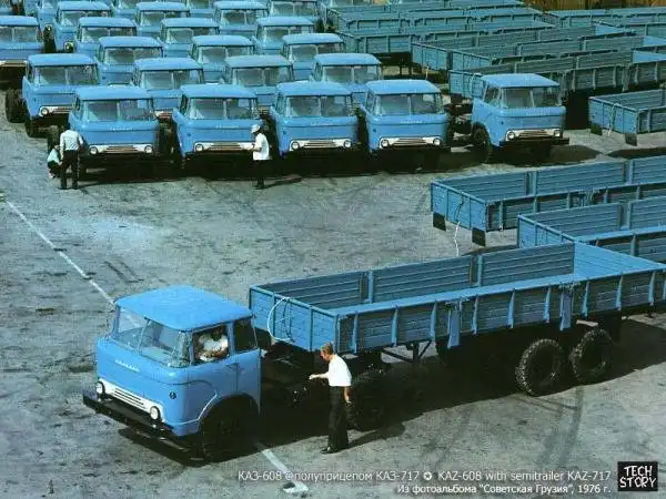 В 1976 г. изменили форму кабины автомобиля. Она приобрела не то что менее округленные, а откровенно квадратные формы. С передней части кабины исчезло написанное в грузинском стиле слово Колхида, появились три незатейливые буквы «КАЗ», растянутые во всю ширину «передка». Но автомобили по-прежнему называли «Колхидами». В начале новый тягач имел индекс КАЗ-608 образца 1976 года.