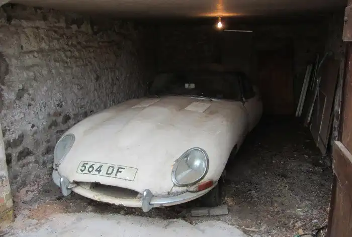 Jaguar E-type был куплен в 1965 году и использовался владельцем до начала 80-х. С тех пор стоял в гараже накрытый чехлом. На момент продажи на его одометре было всего 65 000 миль. При стартовой цене в 40 000 фунтов стерлингов, Ягуар был продан новому владельцу за 109 200 ($168 791), после чего тот отправил его на полную реставрацию.