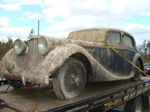 Jaguar MK iV 3 1/2 liter saloon 1948 года, который хранился в гараже с 60-х годов. В 1984 году его переместили из одного гаража в другой, но, как оказалось, неудачно. На долгих 27 лет он стал мишенью для голубей живших под крышей и покрылся толстым слоем птичьего помета.