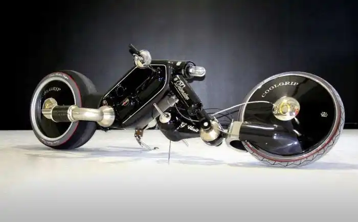 Мотоцикл от компании Tron Legacy разработан дизайнером Дэниэлом Саймоном из Космик Мотор. Он оснащен литий-ионной батареей, заряд которой позволяет преодолеть расстояние 130-160 км, при чем батарея заряжается всего лишь час. Мотоцикл длиной 3,5 метра, переднее колесо – 80 см в диаметре, а заднее – 50 см. К сожалению, он не предназначен для езды по городу. Переднее колесо соединяется с основным корпусом и местом пилота при помощи сложной подвески, напоминающей систему «рычаг». Для управления мотоциклом, особенно на поворотах, используются электромагнитные салазки – еще одна новинка. Цена 150 000 долларов.