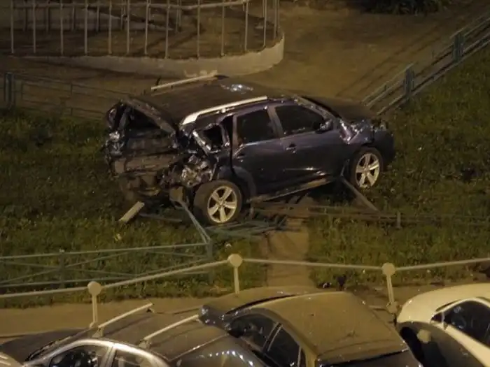 В районе Ходынского поля ночью произошла серьезная авария, в результате которой пострадало более 5 автомобилей. К счастью, в припаркованных автомобилях на момент жуткой аварии не было и никто не пострадал, чего не скажешь о разорванных на куски автомобилях. Виновником стал водитель внедорожника Toyota, который на огромной скорости не справился с управлением и протаранил целый ряд припаркованных автомобилей.