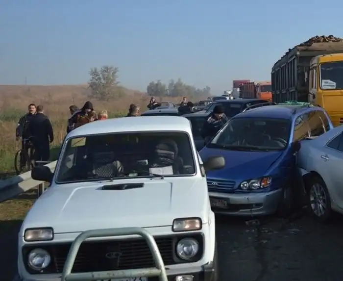 В 8 часов 40 минут произошла первая авария, в ней повреждения получили 36 машин. Немногим позже столкнулось еще пять автомобилей. В целом же, на трехкилометровом участке трассы насчитали 12 локальных столкновений, из-за которых образовался затор длиной в 4 километра.