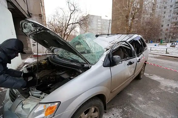 В Красноярске на припаркованную у многоэтажного жилого дома машину марки «Мазда» упала 250-килограммовая облицовочная плита, размером 1х1,5 метра. Инцидент произошел ранним утром, и в машине, к счастью, никого не было. Сейчас в обстоятельствах произошедшего разбираются соответствующие службы.