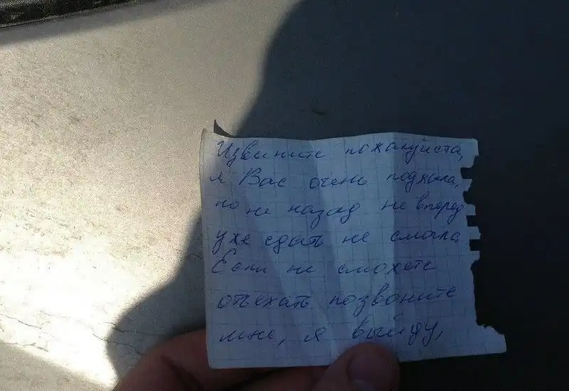 Девушка точно знает толк в парковке! Хорошо хоть записку оставила...