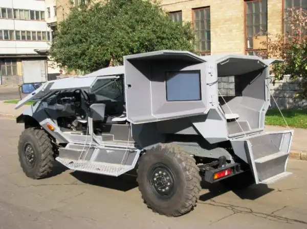 На каркас навешиваются бронелисты различной степени стойкости. Решение позволяет сформировать многофункциональный, легко ремонтируемый броневик. Наружное крепление дверей и люков обеспечивает сохранение кинематики открывания при использовании брони различной толщины.