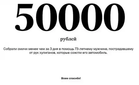 За три дня омичи собрали 50 тысяч рублей для 74-летнего пенсионера, у которого ночью 14 ноября сгорел автомобиль.