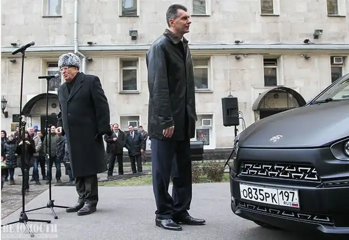 Михаил Прохоров, бизнесмен и основатель партии «Гражданская платформа», подарил Владимиру Жириновскому электромобиль «ё-мобиль». Таким образом, Прохоров сдержал своем обещание, которое он дал два года назад на программе «Поединок».