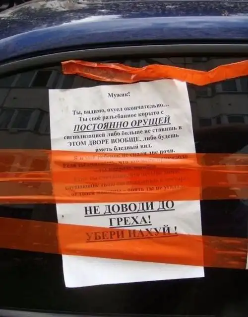 Автомобильные сигнализации, припаркованных у жилых домов машин, зачастую мешают спокойно спать жильцам и тогда они начинают действовать. В данном случае все началось с предупреждений, причем многочисленных.
