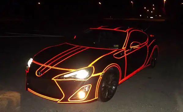 Владелец говорит,что днем на его авто часто обращают внимание прохожие и другие автомобилисты.Однако ночью она привлекает еще больше внимания.