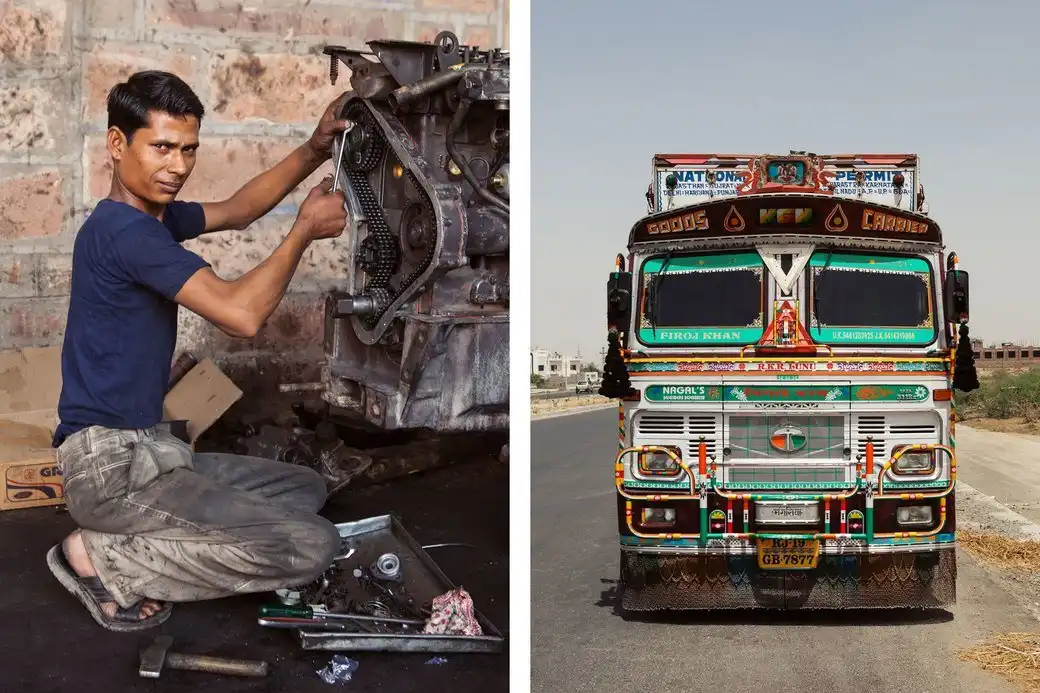 На индийских дорогах, как известно, творится настоящее безумие. Туда одновременно стекаются автомобили, рикши, велосипеды, повозки и даже стада животных. Среди этого многообразия особенно выделяются грузовики — прежде всего благодаря своему яркому и необычному внешнему виду. Фотограф Дэн Экстайн так вдохновился грузовиками и их владельцами, что посвятил им целую книгу .