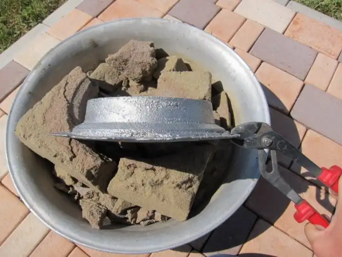 Для дисков понадобилось сырье, им стал блок двигателя ЗМЗ-402 из литейного сплава АК4, а также прочие части двигателя, печь для варки, тигель (может сгодиться бесшовная труба с заваренным дном), обычный древесный уголь, опоки (деревянные рамки для придания формы), просеянные песок и силикатный клей.