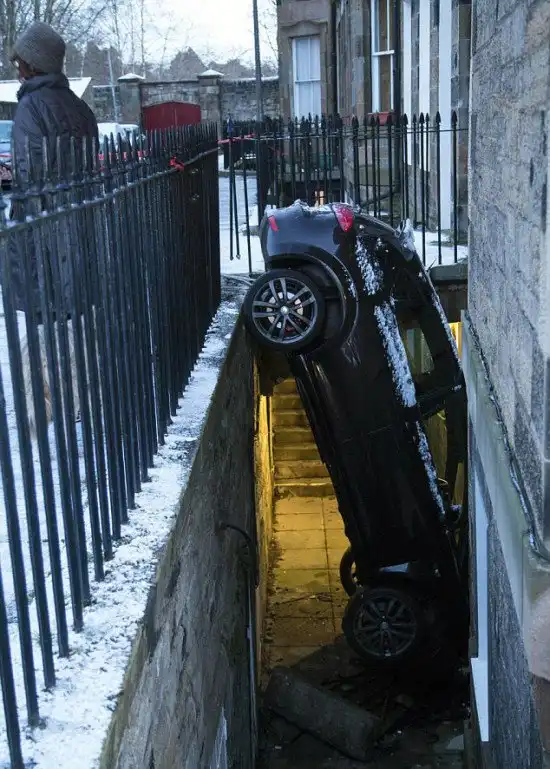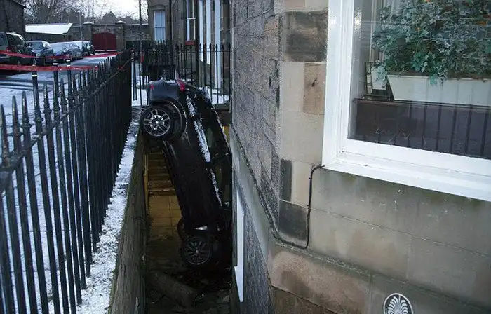 Водитель вместе с автомобилем чуть было не оказался в подвале дома