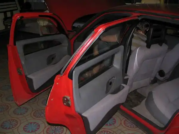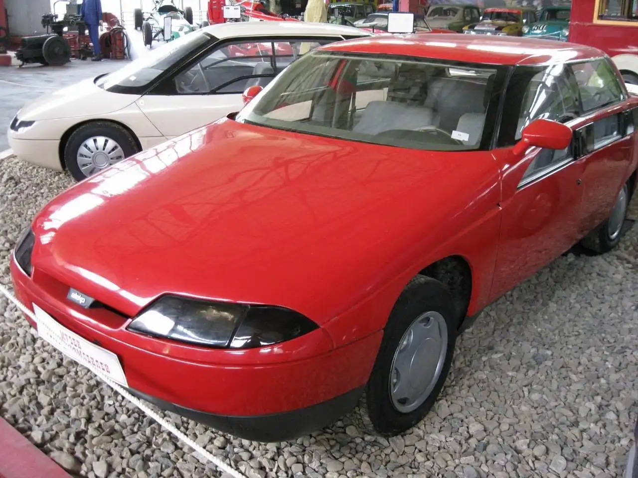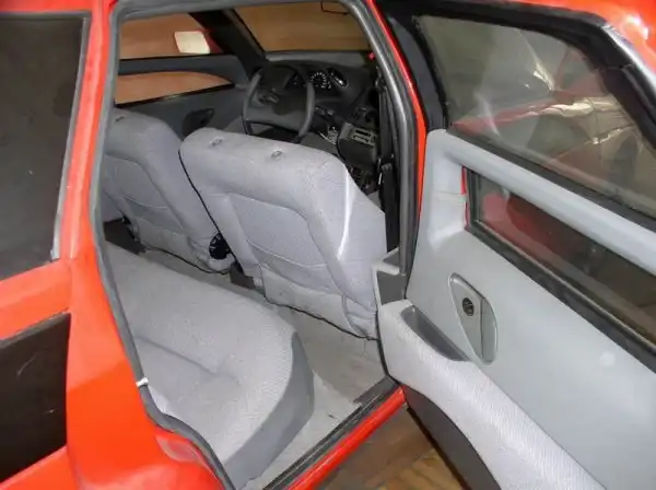 Под вторым чехлом, который гости музея начали поднимать со стороны багажника, стоял красный автомобиль, задние фонари которого напоминали Saab 9000. Расчехляя середину салона, они обнаружили «что-то не то», а когда брезент был свернут окончательно, застыли от изумления — настолько непривычно выглядела представшая перед их глазами машина.