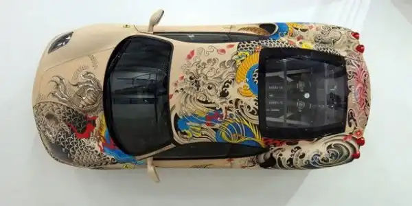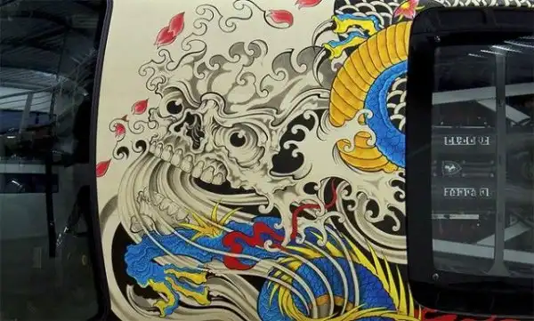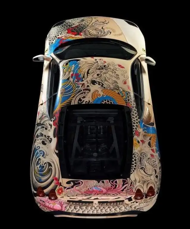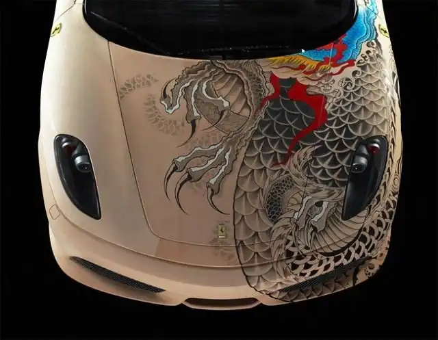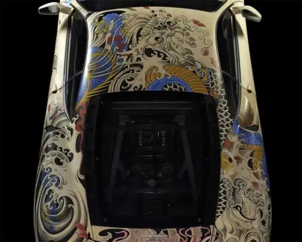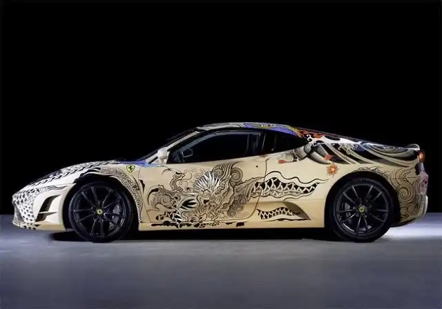 Французский художник Филипп Паска обтянул кожей свой Ferrari F430 и нанес ему по всему "телу" татуировки, напоминающие наколки членов японской мафии якудза. Получилось очень эффектно. К тому, как я могу предположить, с автомойкой проблем быть не должно - татухи же не смываются.