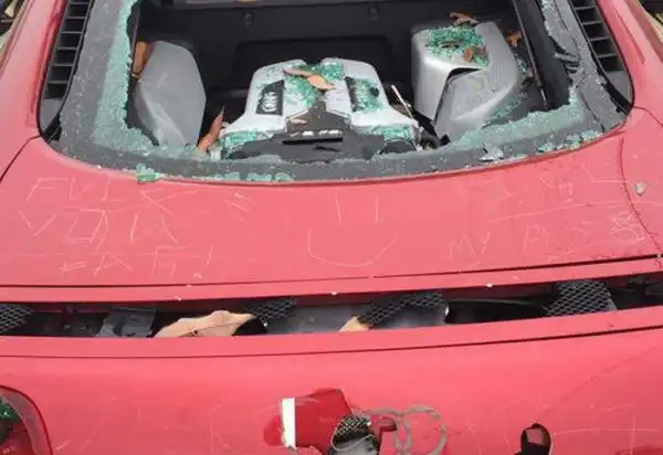 На фото мы можем наблюдать очень тщательный подход женщины к разрушению и уродованию немецкого суперкара. Обманутая супруга старалась не пропустить ни одной детали: все возможные стекла и панели были разбиты, кожа в салоне была порезана, а все ценные информационно-развлекательные системы и циферблаты были удалены. В общем, кажется, что месть женщины прошла довольно успешно. Автомобиль выглядит так, как будто только что пережил нападение истребителя.