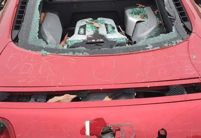 В социальных сетях появились фотографии очень сильно поврежденной Audi R8. Сообщается, что ущерб автомобилю нанесла не ужасная автокатастрофа или сильный шторм, а просто разозлившаяся жена мужа-изменника.