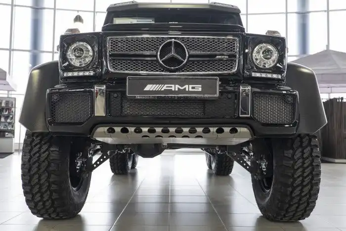 С падением российского рубля цены на многие товары зарубежного производства значительно увеличились, не исключением стали и автомобили. Однако наши банки всегда готовы «прийти нам на помощь». Например, вот этот эксклюзивный внедорожник они предлагают купить в кредит с первоначальным взносом 6 376 710 рублей, а потом в течение 3-х лет за него придется выплачивать по 1 007 415 рублей ежемесячно. Оно и понятно, это ведь не обычное авто, а трехосный пикап премиум класса Mercedes-Benz G63 AMG 6x6.