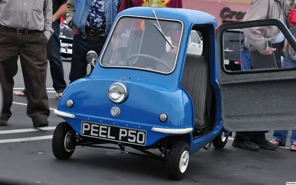 Лидирующее положение среди самых миниатюрных серийных автомобилей занимает английский Peel P50, длина которого всего 1307, а ширина 1040, при высоте 1170 мм. Автомобиль может развивать скорость до 80 км/ч, что вполне соответствует городским нормам. Машину массой в 59 кг Вы легко унесёте вручную, благо, что на задней части автомобиля есть специальная ручка. Эта трёхколёсная одноместная новинка 2011 г. имеет кузов из стекловолокна и кажется игрушечной, но человек, сидящий за рулём, чувствует себя очень комфортно.