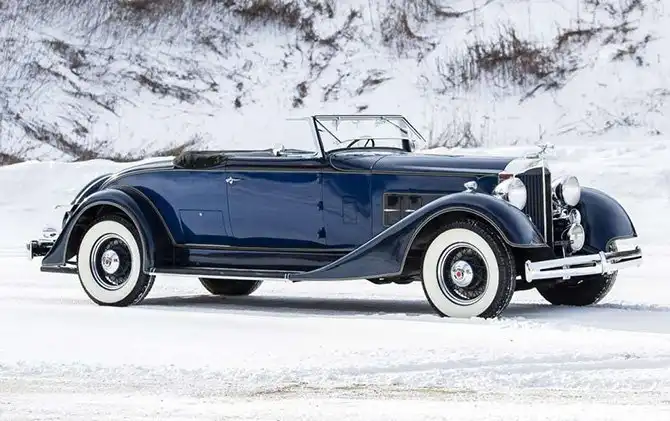 Packard Eight 1101 Coupe Roadster, год выпуска 1934. Ожидаемая цена 177 528 — 215 977 долларов. Интересно, что большую ценность представляют также зимние шины для этого автомобиля. Из-за своей коллецционной редкости, любые оригинальные запчасти для этой ретро-модели Пакард очень дороги.