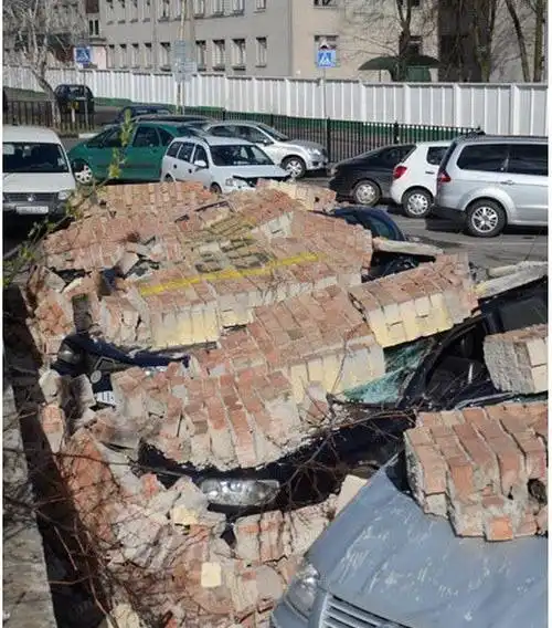 Штормовой ветер, налетевший недавно на Брест, стал причиной обрушения кирпичной стены гаражного кооператива по улице обороны Брестской крепости. Кирпичи обрушились прямо на припаркованные у стены автомобили, получившие серьезные механические повреждения. Всего пострадало 10 машин. Кроме того в других районах города поваленные деревья упали еще на четыре авто.