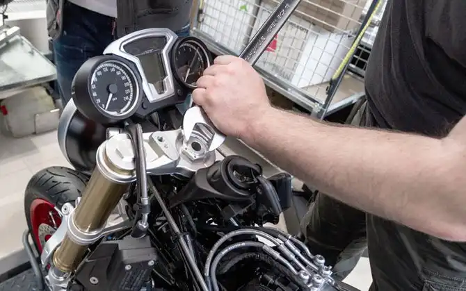 Примерим новые подножки. Специально для nineT выпускают спортивные регулируемые подножки, которые можно подогнать под индивидуальную посадку пилота. Каждая такая подножка – сложный механизм и произведение инженерного искусства. Что тут к чему привинчивают?