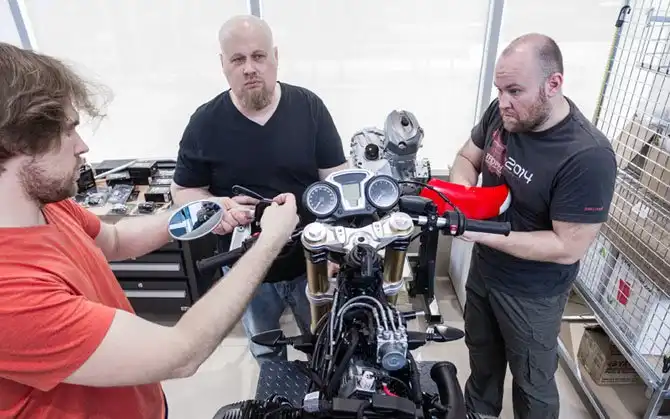 Начальник присел, одобрил. Признал, что ездить так невозможно. Но это уже не важно. Мотоцикл поедет в Питер на выставку. Если 17-19 апреля вы придете на Санкт-петербургский международный мотосалон, то на стенде BMW Motorrad вы увидите этот самый мотоцикл. Можете даже потрогать!