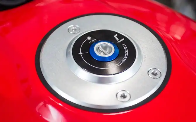 Крышка бензобака тоже нестандартная. Очень красиво! Но не уверен, что удобно. Что-то сходу даже не соображу, как она открывается!