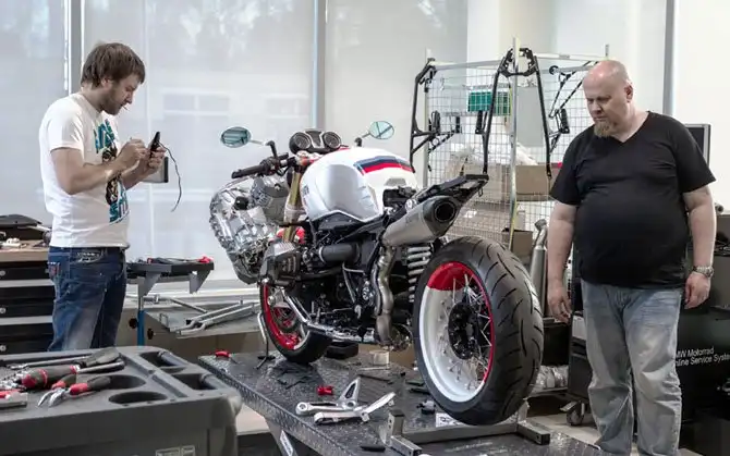 Итак, мы имеем стандартный мотоцикл BMW R 1200 nineT. Нинет, как называют его в байкерской тусовке. Мотоцикл удивительный, уникальный, превосходный… (я долго могу сыпать эпитетами – он того стоит!) …но самый обыкновенный. В смысле – как из магазина. Вон он, на фирменной фотке. Так с чего же начнем?