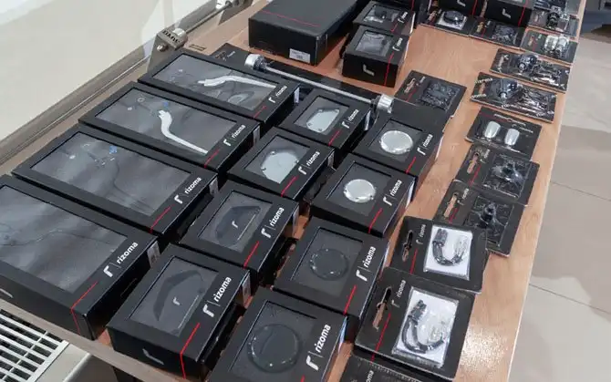 А о ценах даже говорить не будем: весь проект делается на дорогих итальянских компонентах. Вот они, разложены на столе. Каждая железочка, каждый болтик и каждый переходничек заботливо спрятан в отдельную коробочку, проложен поролоном и прикрыт прозрачной крышечкой. Иную ювелирку упаковывают скромнее! Качество тоже ювелирное. Ну и цена тоже…