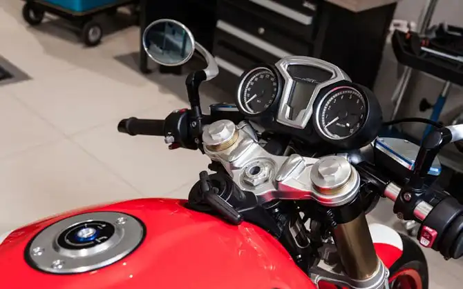 Последний штрих – зеркала. Тоже Rizoma. Хотя, на мой взгляд, и штатные были неплохи. А вот «родная» приборка nineT мне категорически не нравится. Но заменить или хотя бы просто украсить ее нечем. Ничего не предусмотрено.