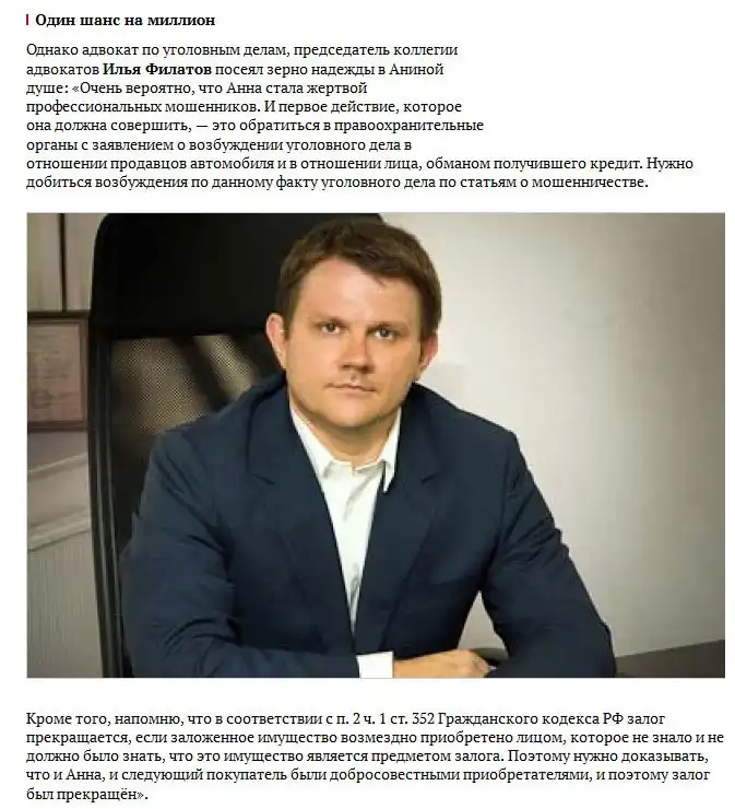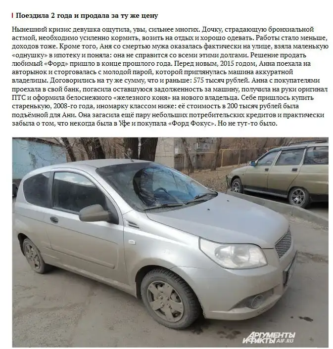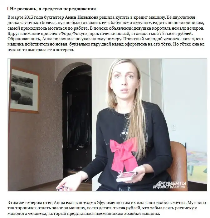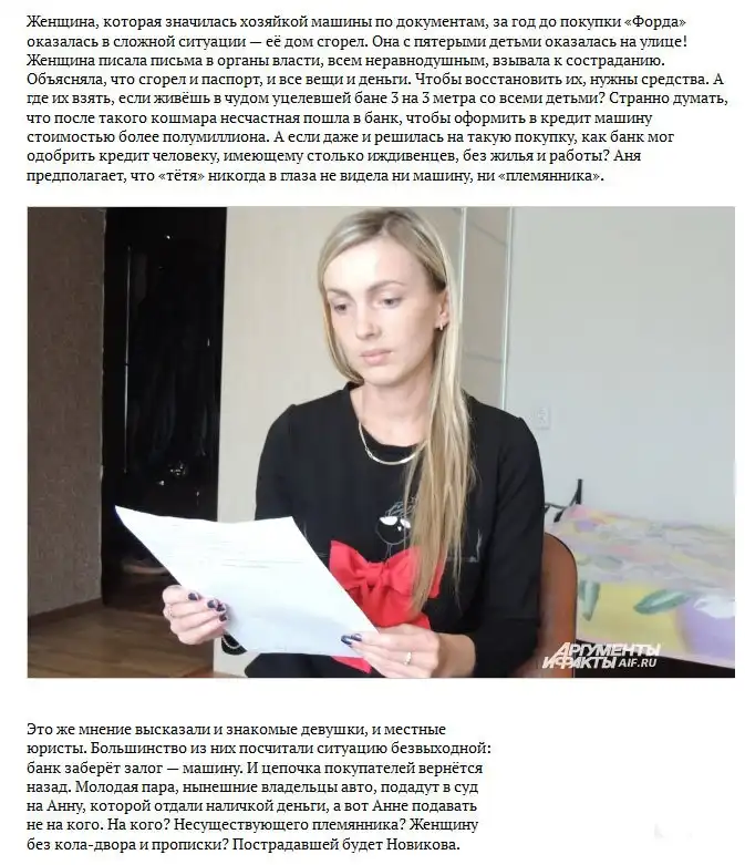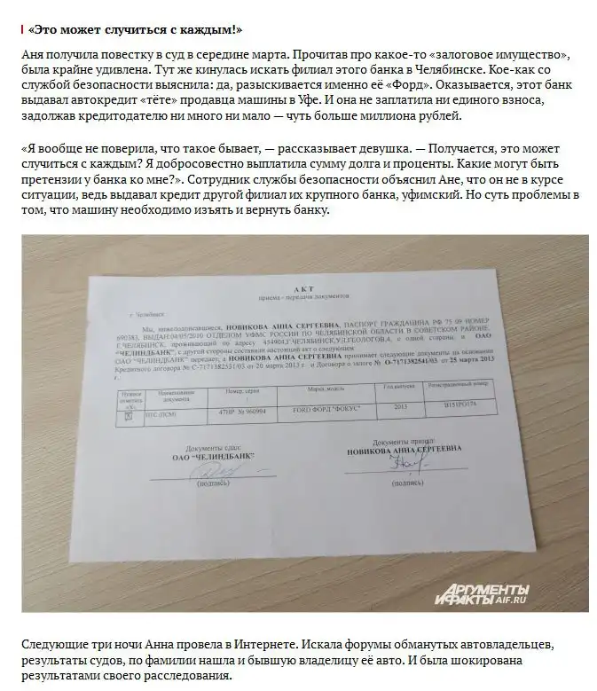 Анна Новикова из Челябинска стала жертвой автомошенников, купив 2 года назад хэтчбек Ford Focus, на который она брала банковский кредит. Проблемы начались уже после того, как девушка решила сменить машину. Продав старое авто и купив новое, она узнала, что ее ждут в суде по поводу «залогового имущества», которым как раз и был данный автомобиль.