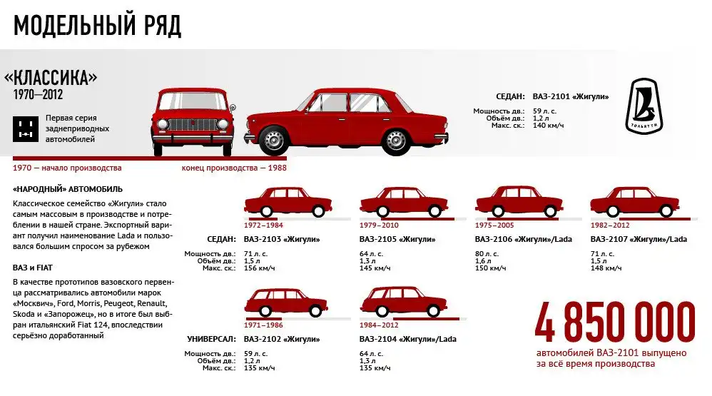 45 лет назад, 19 апреля 1970 года, с главного конвейера Волжского автомобильного завода сошли шесть первых машин. Это были автомобили модели ВАЗ-2101, позже получившей в народе название "копейка".