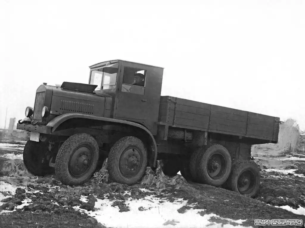 В 1931 г. британская компания «Guy» создала первый в мире полноприводный 4-х осный армейский тягач CAW. Ровно через год независимо от англичан в конструкторском бюро Ярославского автомобильного завода под руководством А.С.Литвинова был создан первый отечественный (и второй в мире) автомобиль высокой проходимости с колёсной формулой 8×8. Машина была представлена широкой публике на параде на Красной площади 7 ноября 1932 г. и успешно испытана зимой 1933 г.