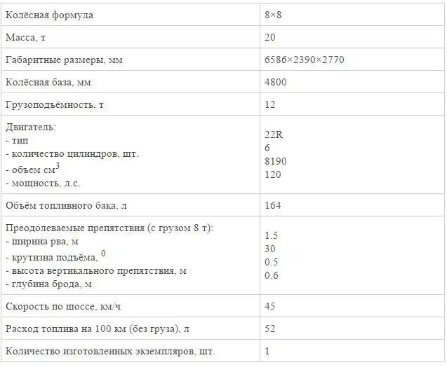 Базой нового автомобиля послужил 3-х осный тягач ЯГ-10, к которому заново пришлось создавать переднюю ведущую тележку с односкатными колёсами и раздаточную коробку, подбирать более мощный двигатель и дорабатывать трансмиссию.