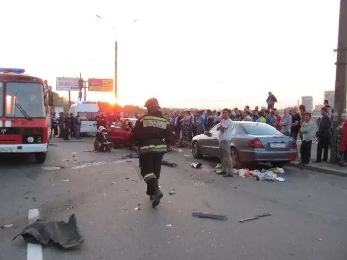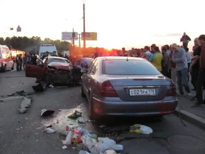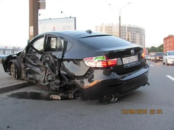В Санкт-Петербурге произошло массовое ДТП с участием сразу шести автомобилей. В районе речного вокзала на проспекте Обуховской обороны водители BMW X6 и Infinity QX70S решили погоняться друг с другом. На скорости 130 - 150 км/ч баварский кроссовер выехал на трамвайные пути, где у него разорвало покрышку заднего колеса. Водитель начал тормозить, но машина стала вращаться и оказалась на полосе встречного движения, где в нее въехал Chevrolet Aveo, который от удара практически развалился. Chevrolet также задел автомобили Ford Ranger и Audi TT. Отлетевшее колесо BMW X6, останавивившегося только у фонарного столба, попало в капот Infinity QX70S, а вылетевшая из багажника Chevrolet банка с краской разукрасила Mercedes E-Class. Водитель и пассажир Chevrolet получили серьезные травмы и были госпитализированы, водитель и пассажир BMW X6 отделались ссадинами и рассечениями. Виновников ДТП установит суд.