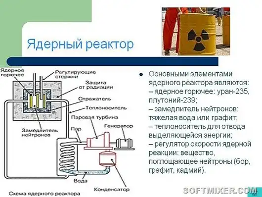 В разных типах реакторов температура рабочей зоны составляет от 250 до 400°С. Проходящая через теплообменники реактора вода, превращаясь в пар, вращает турбины генераторов точно так же, как она делает это на тепловых электростанциях. Процесс продолжается до тех пор, пока концентрация урана-235 в ТВЭЛах не упадёт до 3-4%.